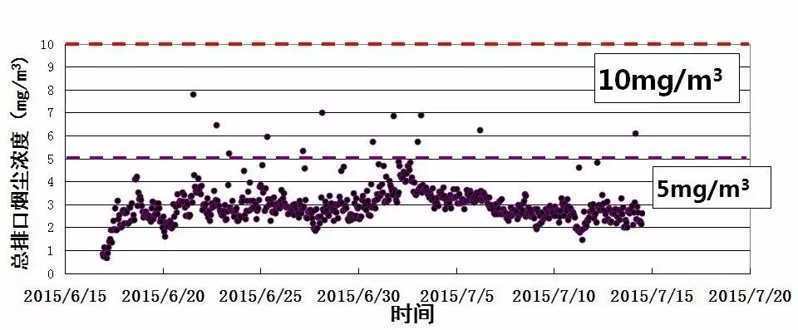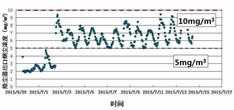 圖1 除塵器出口煙塵排放在線數(shù)據(jù)
