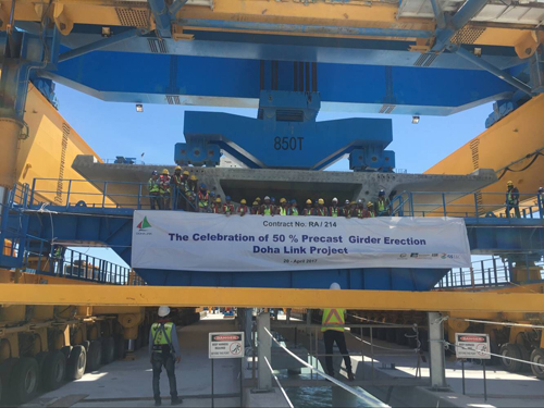 Publication Date:2017-04-21On 20th April of 2017, the second stage of construction in Kuwait Doha Link finished sucessfully. 30 spans(60 pieces) of 40m box girders finished during this period and totally 86 spans(172 pieces) box girders finished for the overall project.